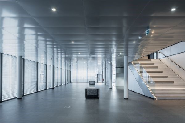 In jeder Hinsicht flexibel und trotzdem stets aktuell und aufeinander abgestimmt – das waren die Anforderungen an den Innenausbau. Um das zu gewährleisten, führte Lindner gleich mehrere Gewerke aus; darunter Doppel- und Hohlböden mit verschiedenen Belägen, Gipskarton-Wände und -Decken, Akustikbekleidungen, Textildeckensegel, Metalldecken, Heradesigndecken, Systemtrennwände sowie Linolstudioverkleidungen.