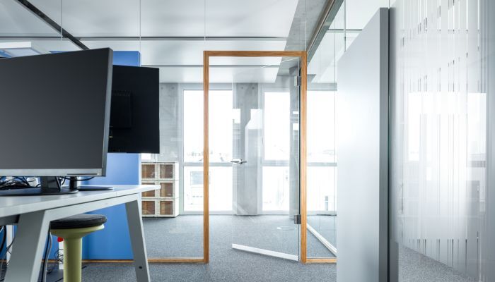 Das Material lässt Sichtkontakte zu, während die raumhohen Trennwände Aerosole und Erreger an der Ausbreitung im Raum hindern. Das desinfektionsmittelbeständige Glas sorgt zudem für leicht zu reinigende Flächen. Das schafft eine angenehme Arbeitsatmosphäre – akustisch, optisch und in Hinsicht auf die Hygiene.