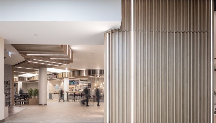 Mit Lindner FIREwood bietet sich eine elegante Lösung für den anspruchsvollen Innenausbau: Die echtholzfurnierte Calciumsulfatplatte überzeugt durch ihr natürliches Erscheinungsbild und erfüllt zugleich höchste Anforderungen an Brandschutz und Akustik. Ob in Flucht- und Rettungswegen, Versammlungsstätten oder öffentlichen Gebäuden – FIREwood verbindet Ästhetik mit Funktion.
