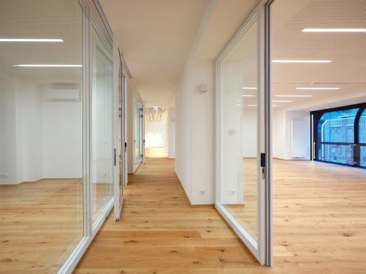 Abgerundet wird das Konzept durch die ATB 68 Aluminium-Schallschutztür, die mit einer Schalldämmung von bis zu 42 dB Rw zusätzlichen Komfort gewährleistet. Das Ergebnis ist eine Bürowelt, in der architektonische Qualität, technische Präzision und umweltbewusstes Bauen in Einklang sind – ein zukunftsweisender Ort für Inspiration, Effizienz und Zusammenarbeit.