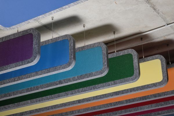 Egal ob an Decken oder Wänden eingesetzt, passen sich die MUTE+ wings® jeder Oberfläche an, um die Schallabsorption im Raum effektiv zu verbessern und den Nachhall zu reduzieren. Dank ihrer innovativen Befestigungssysteme scheinen sie in der Luft zu schweben und bieten so eine elegante Akustiklösung für Büros und andere Räume.