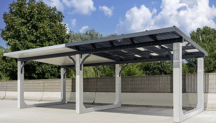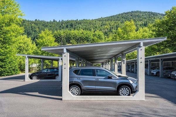 PV-Carports sind industriell vorgefertigte Tragkonstruktionen zur Überdachung von Parkflächen mit integrierten Photovoltaik-Modulen. Die Konstruktionen können frei aufgestellt oder eingegraben ausgeführt werden und sind in unterschiedlichen Geometrien und Abmessungen verfügbar, was wiederum viele Möglichkeiten in der Planung und Umsetzung bietet.