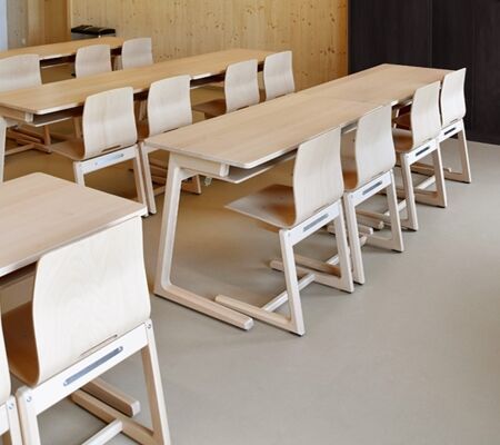 Verfügbar sind Größenklassen für die Primar- und die Sekundarstufen. Die Schülertische sind als Ein- und Zweisitzer mit oder ohne Fachablage erhältlich. Auch diese Produktserie erfüllt alle ergonomischen und statischen Vorgaben aktueller Normen.
