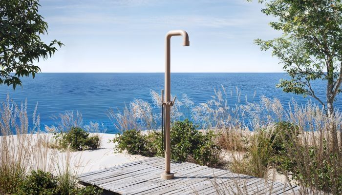 Die freistehende Außendusche JEE-O soho gibt es neu nun auch in den Trendfarben clay(Lehm) und sand - ein Ausdruck von Harmonie von Natur und Design, eine Hommage an die Erde selbst. Die warmen, natürlichen Töne fügen sich mühelos in die Umgebung ein: egal, ob im üppigen Garten, in der rauen Dünenlandschaft oder am ruhigen Strand.