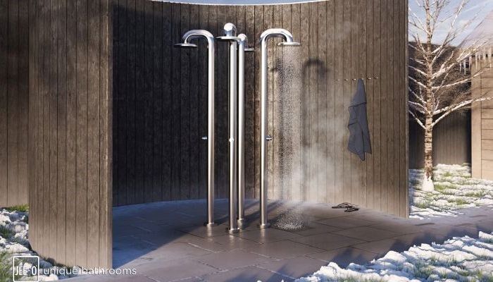 Bieten Sie den Benutzern Ihres Schwimmbads oder Ihrer Sauna die notwendige Hygiene. Auch im Herbst und Winter, bieten JEE-O Duschen wundervolle Wellnessmomente. Mit unserem Frost-Free-System JEE-O 365 sind unsere Duschen frostsicher bis -30 Grad Celsius.