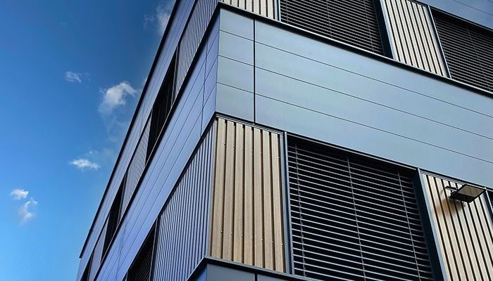 Typisch für die Fassadenelemente ist ihr ebenes, planes Erscheinungsbild, bei dem keine Befestigungsmittel sichtbar sind. Es besteht zudem die Möglichkeit für Eckausbildungen und Anfertigungen mit gebogenen Profilen. Für die Montage stellt das Befestigungssystem MONTAFIX® die perfekte Unterkonstruktion als Ergänzung einer hinterlüfteten Metallfassade dar. Die Fassadenpaneele können einfach, schnell und ohne Durchdringungen in die Unterkonstruktion einhängt werden.