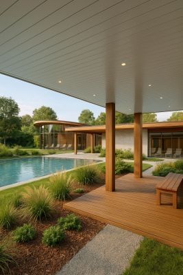 Die tausendfach erprobten Außendeckenlösungen von NE sind eine zukunftsfähige Alternative zu Holz- und Zementlösungen und setzen Maßstäbe im Objektbau. Ein besonderes Plus: Da jedes NE Deckensystem auch im Innenbereich einsetzbar ist, lassen sich fließende Übergänge zwischen innen und außen realisieren – ein starker architektonischer Akzent für eine klare, minimalistische Formensprache.