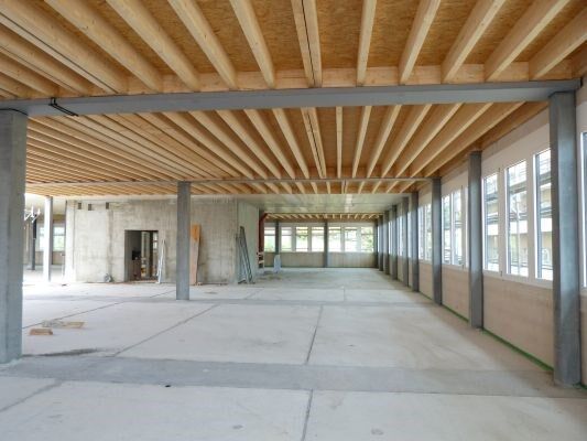 Eine Holz-Beton-Verbunddecke mit DELTABEAM reduziert die Gesamtdicke der tragenden Deckenkonstruktion und ermöglicht große Spannweiten mit weniger Stützen, für architektonische Freiheit ohne Kompromisse. Eine flexible Raumgestaltung ist damit im gesamten Gebäudelebenszyklus möglich. Der Träger sorgt mit den ebenen Deckenuntersichten für mehr Raumhöhe oder mehr Geschosse für eine gegebene Gebäudehöhe sowie für eine einfache Installation der technischen Gebäudeausrüstung.