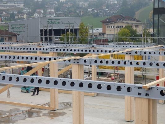 DELTABEAM® Stahlverbundträger ist eine hervorragende Lösung für Slim-Floor-Konstruktionen im Holz-Beton-Verbundbau. Wir kombinieren die leistungsfähigen Baustoffe Holz, Stahl und Beton ganz nach dem Motto „Vorteile kombinieren und Nachteile eliminieren“: Holz-Beton-Verbund vereint mit dem Stahl-Beton-Verbund, um die Vorteile beider Konstruktionen maximal zu nutzen. Auf diese Weise entsteht ein Hybrid, der in allen Belangen moderne Anforderungen an eine Tragstruktur erfüllt.