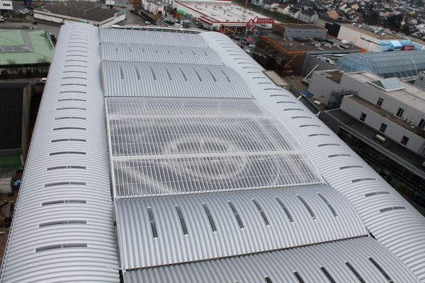 Das eindrucksvolle Industriedach ist schnell bezugsfertig und erfüllt sämtliche Sicherheitsanforderungen wie Wärme- und Schallschutz, Feuchte- oder Brandschutz. Transparente Lichtschalen ermöglichen Tageslichteinfall und sorgen für ausreichend Helligkeit. So werden auch große Industriehallen lichtdurchflutet und freundlich.