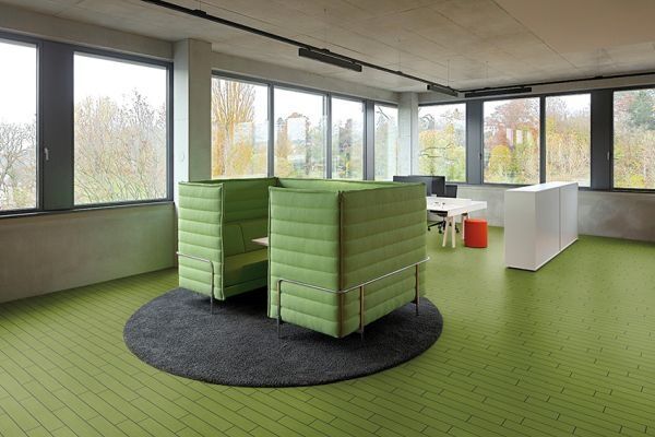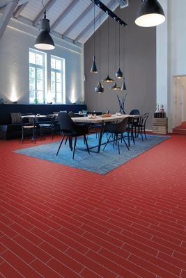 Architekten und Planer finden hier Inspiration in Form von subtilen Texturen, gewebten Optiken und kräftigen Farbtönen wie Saphirblau, Gelb oder Moosgrün. Ob eine Verlegung im Fischgrätmuster in Zebrano-Optik oder farbenfrohe Akzente – der Boden wird zum zentralen Gestaltungselement.
