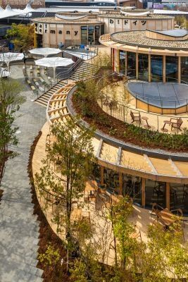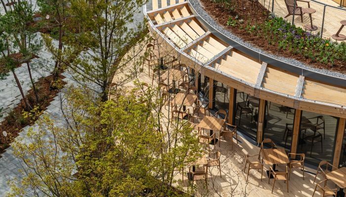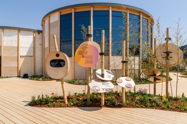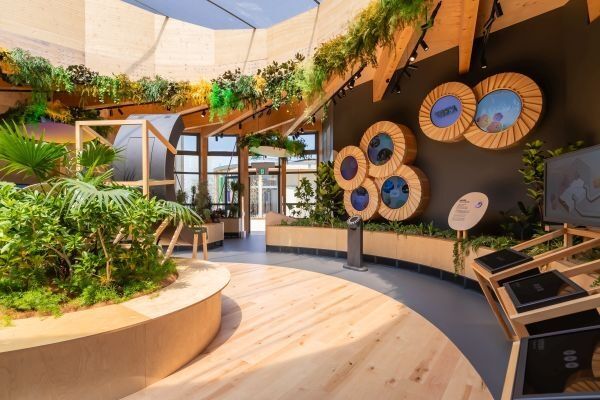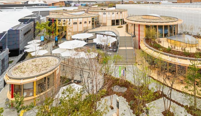 Die Kreislaufwirtschaft – ein Thema von hoher gesellschaftlicher Relevanz, wurde dabei nicht nur inhaltlich, sondern auch architektonisch konsequent umgesetzt. Die Gebäude aus Stahl und Holz waren kreisförmig angeordnet und bildeten damit selbst ein sichtbares Zeichen für zirkuläres Bauen. Dieser architektonische Ansatz zeigte eindrucksvoll, wie nachhaltige Materialien, flexible Konstruktionen und zukunftsorientiertes Denken zu einem kohärenten Gesamtkonzept verschmelzen können. Der Pavillon wurde so zu einem begehbaren Exponat, das die Besucherinnen und Besucher unmittelbar in die Idee der Kreislaufwirtschaft eintauchen ließ.