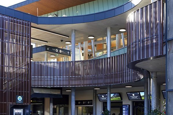 Die Lochblechfassade der Ehrwalder Almbahn zeigt beispielhaft, wie dauerhafter Wetterschutz und klare architektonische Linienführung zu einer harmonischen Einheit werden.