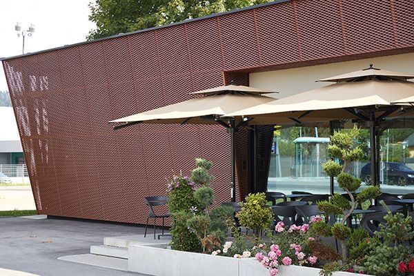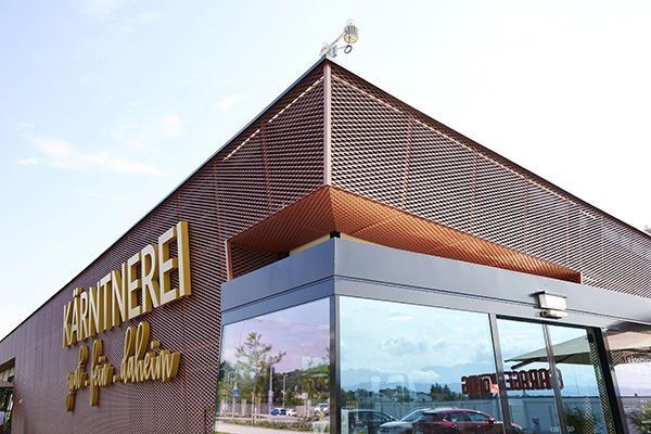 Pulverbeschichtungen in allen RAL-Farben ermöglichen maßgeschneiderte Lösungen oder die exakte Umsetzung von Corporate Designs. Farben prägen die Wahrnehmung von Architektur: Sie können Gebäude harmonisch in ihre Umgebung integrieren oder gezielt hervorheben – wie bei der rostroten Streckmetallfassade der Kärntnerei in Klagenfurt, die durch ihre warme, einladende Ausstrahlung schon aus der Ferne Aufmerksamkeit erzeugt.