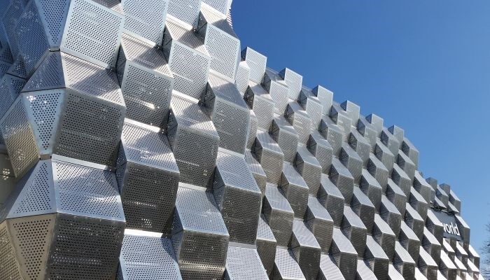Als absoluter Hingucker fungiert das außergewöhnliche Design der Fassade. Sie besteht aus mehr als 3000 m² Lochblechen, die von RMIG hergestellt und geliefert wurden, und verleiht dem Gebäude ein Science-Fiction-Feeling. Der Komplex liegt nur wenige Kilometer vom Fluss Mersey entfernt, daher dienen die Edelstahlbleche als ideale Lösung für eine langlebige und widerstandsfähige Fassade zur Küstenumgebung.