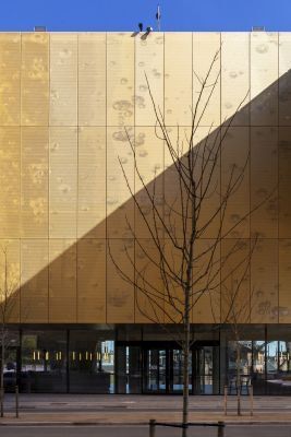 Bei der Marke Carlsberg kommen einem sofort durstlöschende Getränke in den Sinn. Warum also nicht auch die Optik daran anpassen? Daher entschieden sich C.F. Møller Architects für ein Fassadendesign, bei dem der Eingang des neuen Hauptsitzes erfrischende, goldene Blasen darstellt - Sinnbild für das wohl beliebteste Getränk von Carlsberg. RMIG erstellte die Aluminium-Fassade unter Verwendung von RMIG ImagePerf, um das Muster der Blasen zu erstellen.