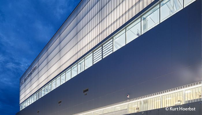 Mit der Sport-Arena Wien ist ein multifunktionales Sportzentrum entstanden, das architektonische Prägnanz mit nachhaltiger Gebäudetechnik verbindet. Ein zentrales Element des Entwurfs von Karl und Bremhorst Architekten ist die transluzente Fassadenhülle aus Polycarbonat-Paneelen der Rodeca GmbH.