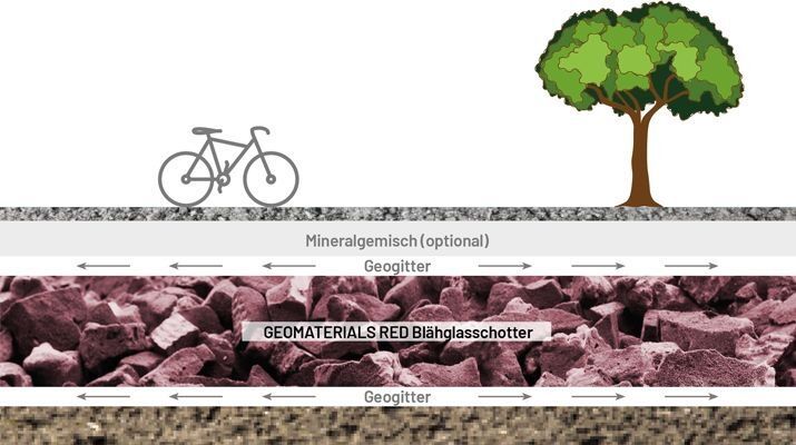 Dank seiner hohen Tragfähigkeit eignet sich GEOMATERIALS RED Blähglasschotter auch als belastbares Fundamentmaterial – insbesondere in Regionen mit gering tragfähigem Untergrund. Es nimmt hohe dynamische Lasten auf und reduziert so Setzungserscheinungen effektiv.