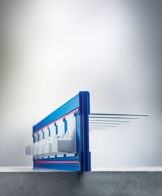 Schöck Tronsole® Typ P: Trittschalldämmelement für den Anschluss Podest an Stiegenhauswand, ermöglicht auch z. B. filigrane Sichtbetonpodeste