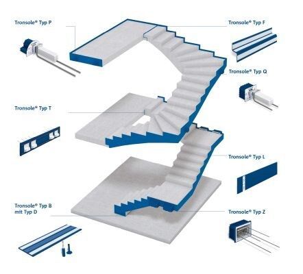 Schöck Tronsole® Typ F: Trittschalldämmelement für den Anschluss Stiegenlauf an Podest mit Konsolenauflager