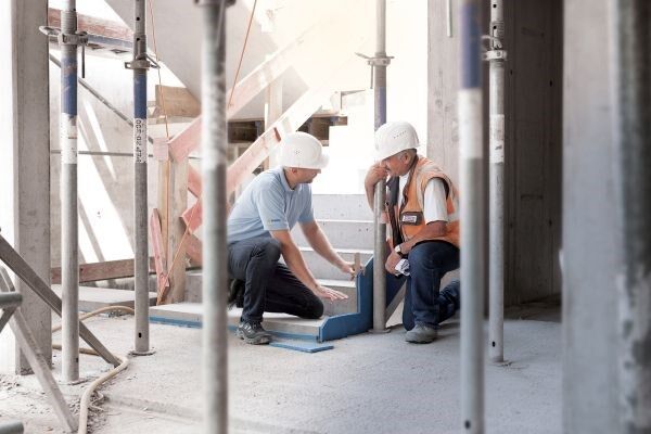 Schöck Tronsole® Typ L: Trittschalldämmung für die Fuge Stiege an Wand