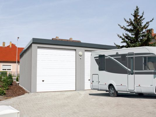 Die Stahlgaragen sind besonders nachhaltig, da die spezielle Galvalume-Verzinkung im Vergleich zu normalen Verzinkungs-Verfahren bis zu 5-mal länger hält. Die Garagen zeichnen sich durch besonders hohe Stabilität aus: sie trotzen Wind und Wetter, ganz ohne die Notwendigkeit des Nachstreichens. In der Standardvariante tragen die Decken eine Schneelast von 125 kg/qm, für Regionen mit besonders viel Niederschlag ist die Schneelast auf über 300 kg/qm erhöhbar.