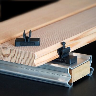 Die tragende Unterkonstruktion ist so konzipiert, dass mit höhenverstellbaren Justierfüßen „Justifix II JK“ für jeden Untergrund eine solide und langlebige Basis angeboten werden kann. Seit ca. 10 Jahren ist die patentierte Montageschiene „Symbiofix“, bestehend aus einem Aluminiumprofil und einem Kern aus Thermoholz, die sicherste und dauerhafteste Lösung als Auflage für den Deckbelag. Für die unsichtbare Terrassenbefestigung gibt es aktuell mehrere Systeme aus dem Hause Sihga, von denen in den beiliegenden Bildern das System „Gleitfix“ vorgestellt wird.