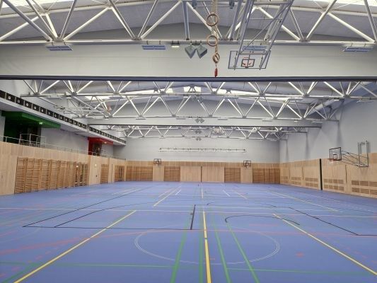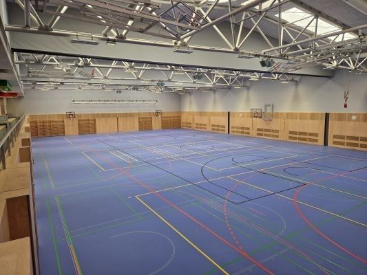 Aufgrund der jahrelangen Expertise wurde Swietelsky mit der Ausführung der Sportböden, Wandverkleidungen, Turngeräten und Trennvorhängen innerhalb der Sporthalle sowie im Kraft- und im Judoraum betraut.