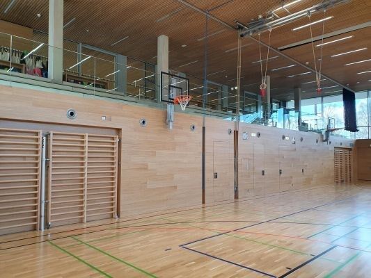 All das entspricht natürlich der Richtlinie für Prallschutzwände des Instituts für Schule und Sport (ÖISS) "Anforderungen an anprallmindernde Verkleidungen von Wänden in Turn- und Sporthallen". Es werden somit sportfunktionelle Eigenschaften mit den schutzfunktionellen Anforderungen vereint.