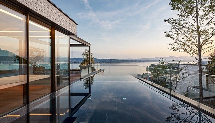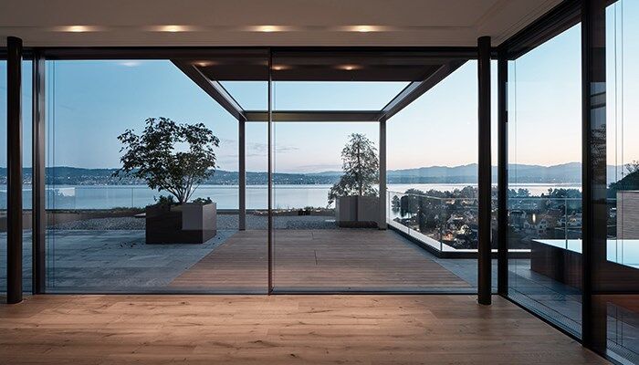 swissFineLine setzt mit seinen großformatigen Schiebefenstern neue Maßstäbe in der Architektur. Die übergroßen Fensterflächen, die bis zu 25 Quadratmeter groß und bis zu 8 Meter breit sind, lassen Tageslicht ungehindert in den Raum strömen und schaffen ein Gefühl von grenzenloser Offenheit. Durch das puristische Design und die schmalen Mittelprofile von nur 24 Millimetern bleibt der Panoramablick zudem vollkommen ungestört.