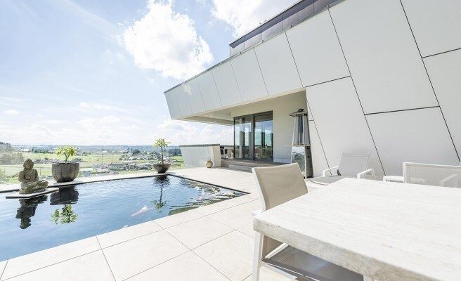 Die hochwertigen Faserzementplatten im Großformat begeistern durch ihre Qualität, den unverwechselbaren Materialcharakter und die freie Formatwahl: Die Largo Fassadenplatten können innerhalb des maximalen Nutzformates beliebig auf das gewünschte Maß zugeschnitten werden.