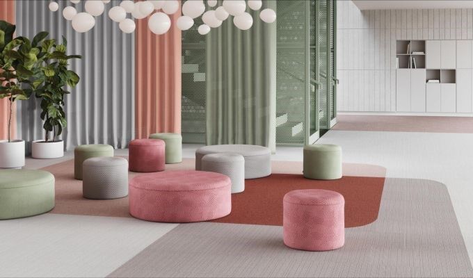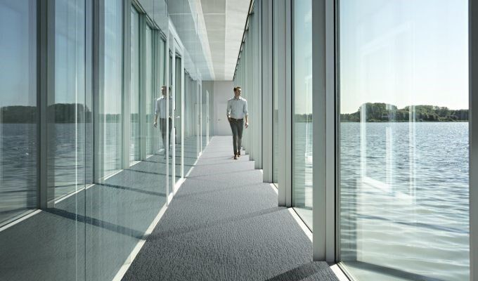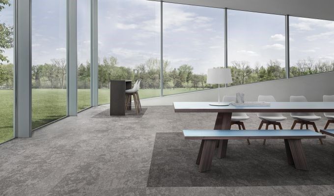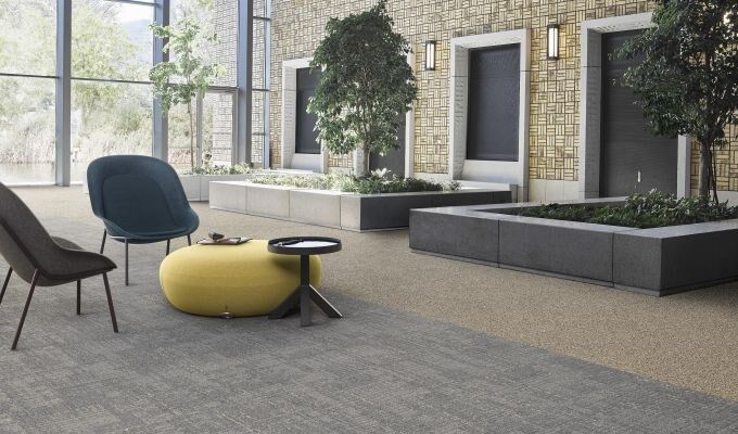Die strukturierten Schlingenteppichfliesen aus 100% regeneriertem ECONYL-Garn gibt es in 9 Kollektionen. Diese sind standardmäßig mit dem EcoBase Rücken ausgestattet und können sogar nach dem Gebrauch recycelt werden.