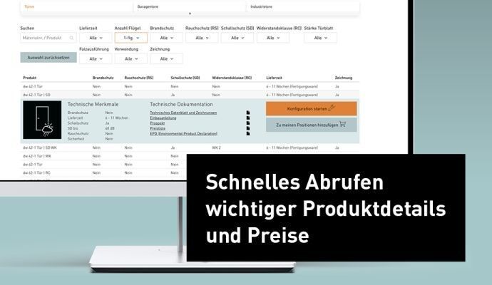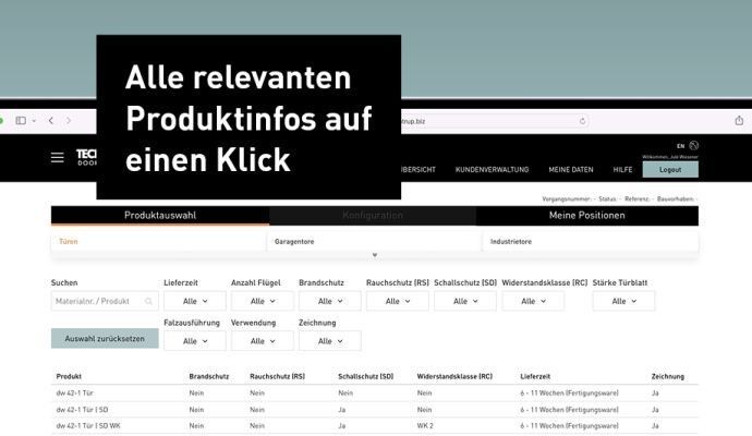 Höchste Ansprüche auf allen Ebenen? Von Anforderungen hinsichtlich des Brand- oder Schallschutzes, des Türblattes, der Anschlagsrichtung und Zargenauswahl bis zum passenden Beschlag – TEO bietet die Möglichkeit alle wichtigen Produktdetails dank der Plausibilitätsprüfung passgenau und optimal aufeinander abzustimmen. Schauen Sie sich gleich an, wie sich spielend leicht komplexe Türen und Tore konfigurieren lassen.