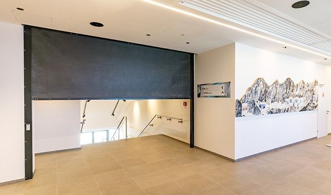 Die mitgelieferte Steuerungseinheit sorgt für eine zuverlässige Schließung des Vorhangs bei Brandfall und ermöglicht die komfortable Bedienung des Systems, für höchste Sicherheit und einfache Integration in bestehende Brandmeldesysteme. Die Schließung erfolgt nach dem „Gravity Fail Safe“-Prinzip, also rein mechanisch durch Eigengewicht, ohne Energiezufuhr und damit besonders zuverlässig im Brandfall. Die Montage ist dank vorkonfektionierter Verkabelung und verdeckt liegender Endlagen besonders serviceorientiert.