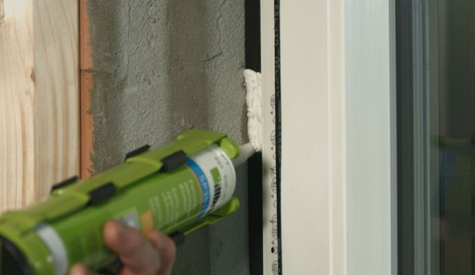Speziell für Sanierungen und Reparaturen beim Fenster- und Rollladenkastentausch: der 1-komponentige, signalweiße illbruck SP561 Struktur-Hybrid bildet eine raue Oberflächenstruktur aus, sodass die Laibung einfach wieder beigeputzt werden kann, Löcher und Unebenheiten auf der Innen- und Außenseite verschwinden.