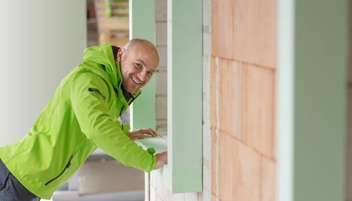 Mit besonders leichten Fenstermontage-Riegeln und passgenauen Pfeil-Stoßverbindungen garantiert es einen perfekten Workflow auf der Baustelle und stellt dabei ganz einfach eine starke wärmebrückenreduzierte Fenstermontage direkt in der Dämmebene sicher.