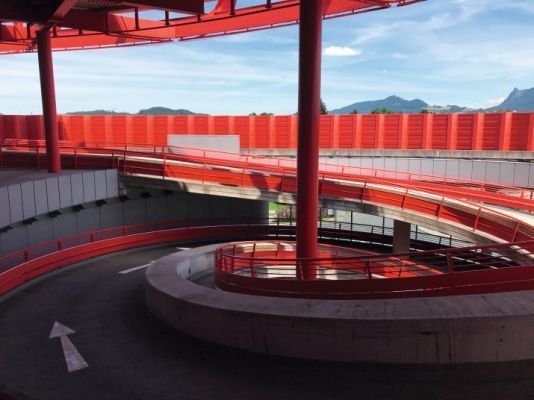 Die Flüssigabdichtung auf Basis von Polymethylmethacrylat (PMMA) legt sich wie eine zweite Haut auf die Betonoberfläche, für die dynamische Rissüberbrückung und maximale Widerstandskraft sorgt die integrierte Vliesarmierung. So steht dem Besuch der 1997 vom italienischen Architekten Massimiliano Fuksas entworfenen Shoppingtempel nichts im Wege. Die Rampenspirale bietet Zugang zu 4.200 kostenlosen Stellplätzen in einer Tiefgarage und einem Parkdeck.