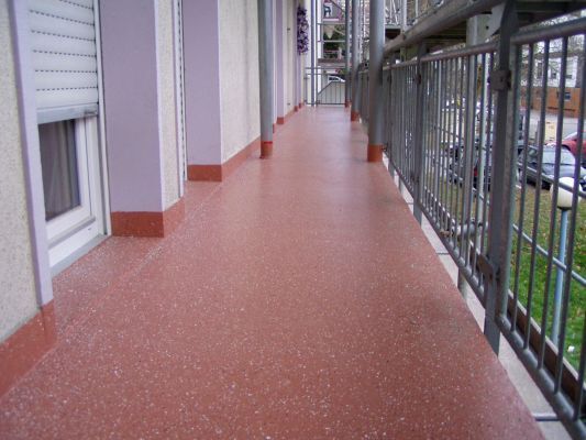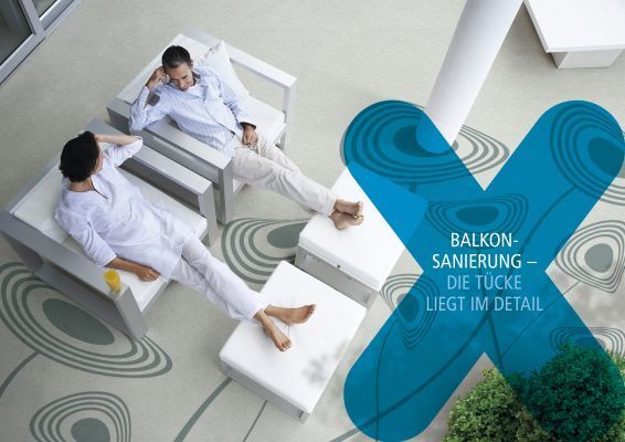 Bei Abdichtungen von Balkonen können kleine Details wie Anschlüsse, Durchdringungen, Entwässerungsrinnen, Fugen und Regenrohre schnell zu Problemfällen werden. Denn werden sie nicht korrekt in die Abdichtung eingebunden, kann an diesen Stellen Feuchtigkeit eindringen und die Bausubstanz beschädigen. Um dies zu verhindern, bietet Triflex eine Abdichtung auf der Basis von Flüssigkunststoff. Die Systemlösung aus Polymethylmethacrylat (PMMA) lässt sich problemlos an komplexe Bauformen anbringen und schützt so zuverlässig vor Feuchtigkeit. Durch ein Spezialvlies werden außerdem Bewegungen aus der Bauwerkskonstruktion, zum Beispiel bei Materialübergängen, aufgenommen. Durch diese dynamisch rissüberbrückende Schicht ist das System besonders flexibel.
