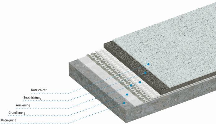 Der große Vorteil der Sanierung mit Flüssigkunststoff liegt daran, effektiv Kosten und Zeit zu sparen, ohne auf Qualität zu verzichten. PMMA haftet vollflächig auf den meisten Untergründen, wodurch ein Abriss umgangen werden kann. Der Kunststoff ist hochelastisch und gleicht Bewegungen im Bauwerk dynamisch aus. So ergibt sich eine beständige und zuverlässige Abdichtung, die selbst gegen chemische Substanzen wie Kraftstoffen, Ölen und Reinigungsprodukten eine hohe Widerstandskraft aufweist. Durch ihre Flexibilität ist die Flüssigkunststoffabdichtung ganz besonders für komplexe Details wie Schrammborde, Anschlüsse und Fugen geeignet. Für stark befahrene Stellen wie Kurven und Beschleunigungszonen kann die Oberfläche zusätzlich verstärkt werden, um die Rissbildung auch bei starker Frequentierung zu minimieren.