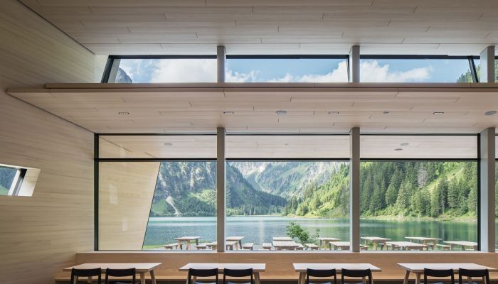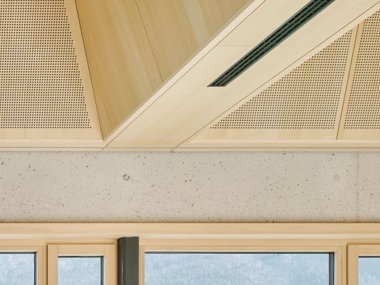 Es freut uns besonders, wie harmonisch das Zusammenspiel der beeindruckenden Natur außen mit der "fast unsichtbar" gelochten Akustikdecke im Innenraum gelungen ist.