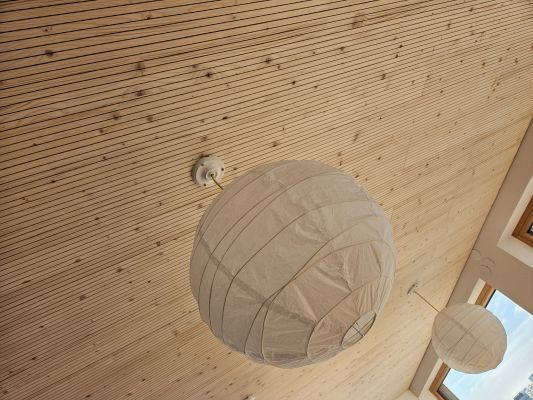 Es freut uns besonders, dass der Bauherr diese Decke nach einigen Jahren der Raumnutzung mit wenig Aufwand "nachrüsten" konnte und auch die gewünschte Optik der ursprünglichen Fichte-Holzuntersicht fast unverändert weiter bestehen kann.