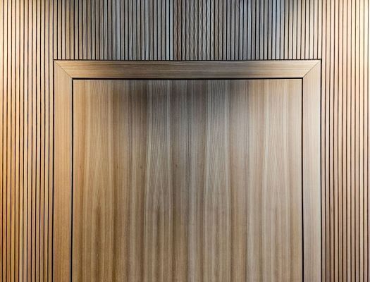 Akustikwandverkleidung VARIOSORBER+NUTFORM S12N4-S in MDF+Ulmefurnier.