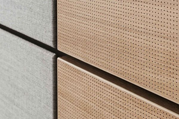 Mikroperforierte Akustikpaneele kommen neben der Anwendung als akustisch wirksame Wand- oder Deckenverkleidung vor allem als Akustik-Schrankfronten zum Einsatz.