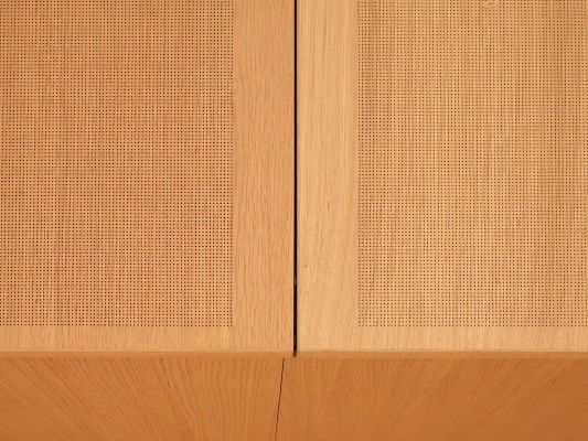 Perfekt auf die gewünschte Absorption abgestimmte Lochraster in Kombination mit sehr kleinen Lochdurchmessern stellen sicher, dass nicht nur die Raumakustik optimiert wird, sondern auch die hochwertige Optik der Holzoberfläche voll erhalten bleibt.