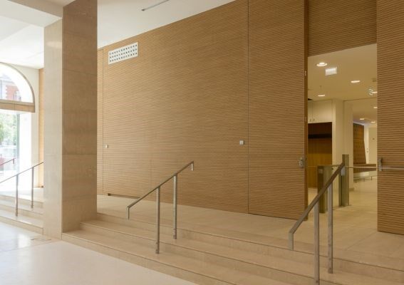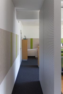 Mobile oder fixe Trennwände mit Akustikpaneelen müssen meist gleichzeitig Anforderungen an Bauakustik (Schalldämmung) und Raumakustik (Schallabsorption) erfüllen. Bei entsprechender Planung des Aufbaues und der verwendeten Materialien ist es möglich beidem gerecht zu werden. Die Randfriese für Beschläge, Ausschnitte oder Bearbeitungen können projektspezifisch abgestimmt werden.