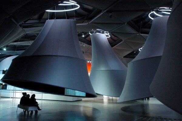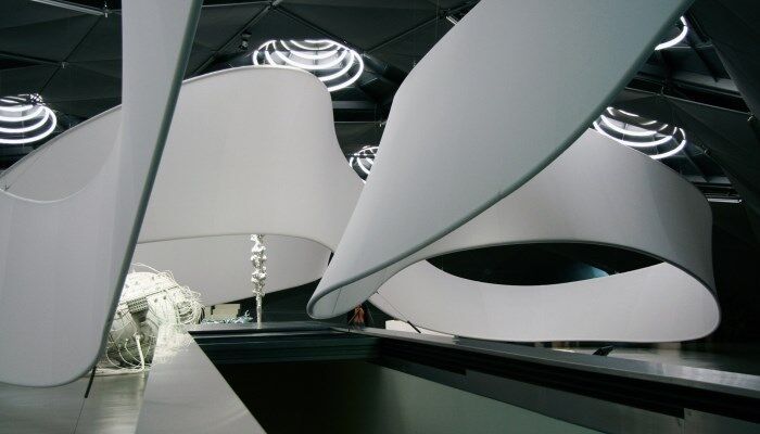 Textile Konstruktionen eigenen sich nicht nur im Einzelhandel und für Messen als gestalterisches Kommunikationsmittel – als raumbildende Elemente setzen sie Akzente in Galerien, Museen, Theatern und öffentlichen Gebäuden.