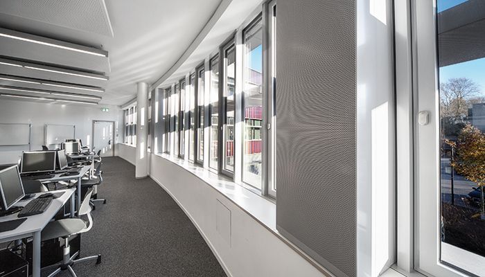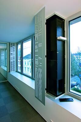 Als dezentrales Lüftungssystem wird SCHOOLAIR-V-HV in der Fassade angebracht. Weil die Luft dadurch nur kurze Wege zurücklegen muss, ist die Installation besonders einfach und die Investitionskosten bleiben niedrig. Auch individuelle Raumlösungen, so wie eine ästhetische Verkleidung im Innen- und Außenraum sind damit möglich. SCHOOLAIR-V-HV eignet sich dadurch gleichermaßen im Neubau sowie in der Sanierung.
