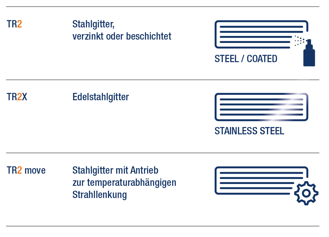 Die neue TR2-Familie vereint alle bisherigen TR-Gitter in einer optimierten Linie in bewährter Optik und hoher Qualität in drei Serien: