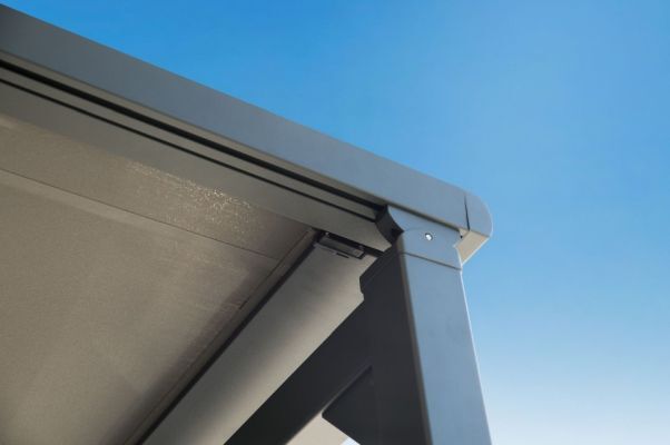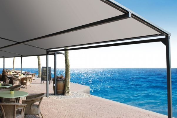 Die gestützte Terrassenbeschattung vBAHAMA-ZIP vereint Zweck, Design sowie Architektur in einem System und besticht durch schlichte Eleganz ebenso wie ihre Stabilität. BAHAMA-ZIP ist besonders widerstandsfähig und verfügt über die neueste ZIP-Technologie.