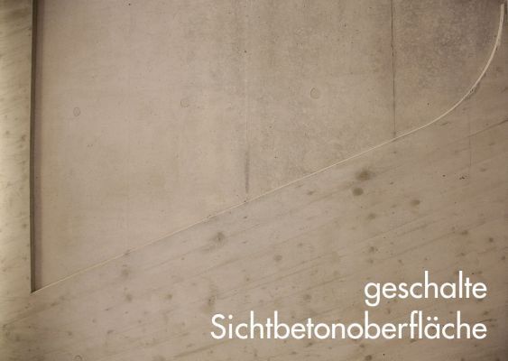 Bei Sichtbeton kommt die betont ausgewählte Struktur einer Schalung deutlich zur Geltung. Durch die Ausführung oberflächennaher Schichten mit besonders feinem Beton entsteht ein homogenes Gesamtbild. Der Sichtbeton kann aufgrund seiner Fließfähigkeit und Feinheit die Geometrie und Oberfläche seiner Schalung perfekt wiedergeben.